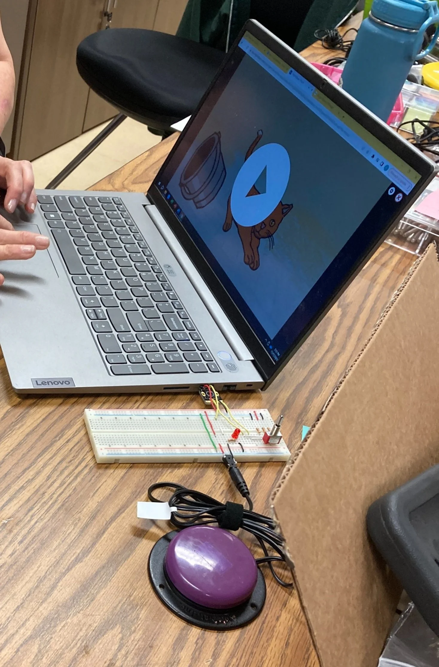 T-ball Machine: Co-designed T-ball interface automating bat swings with button press, enabling play for those with motor planning disabilities